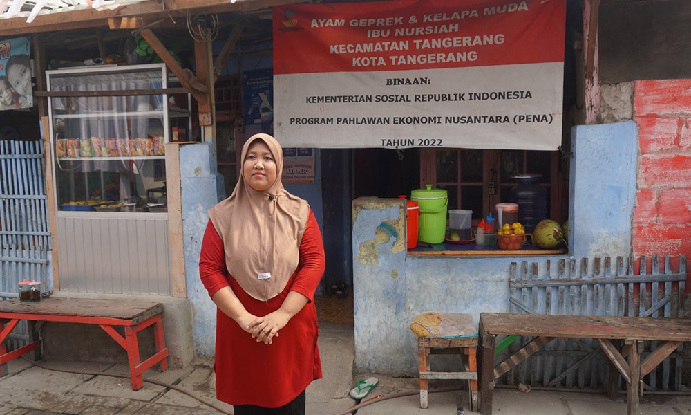 Nursiah -- akrab disapa Yayah, sudah memulai aktifitasnya sejak pukul 5 pagi, mulai dari berbelanja hingga mempersiapkan dagangannya. Wanita 32 tahun ini buka usaha ayam geprek dan kelapa muda di daerah Tanah Tinggi, Kota Tangerang, Provinsi Banten. Awalnya ibu dua anak ini mendapatkan bantuan BPNT (Bantuan Pangan Non Tunai) kemudian pada tahun yang sama, tahun 2017 masuk ke dalam PKH (Program Keluarga Sejahtera).