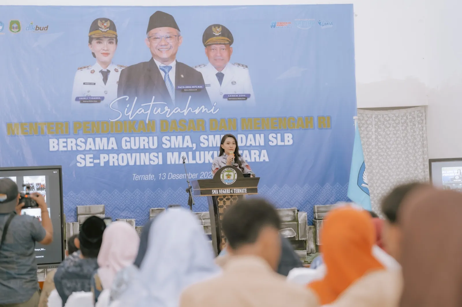 Mendikdasmen pada acara Silaturahim Menteri Dikdasmen bersama Pendidik SMA/SMK/SLB se-Maluku Utara, yang diadakan hybrid berpusat di SMAN 4 Ternate sejak Sabtu (13/12).