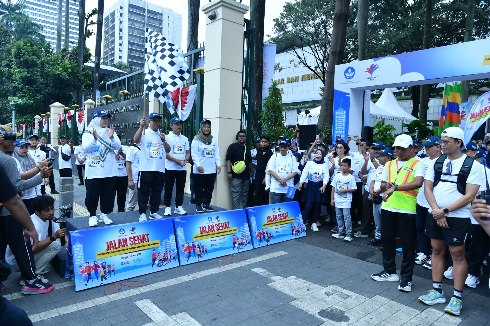 CARAPANDANG - Memeriahkan Bulan Pendidikan dalam rangkaian peringatan Hari Pendidikan Nasional (Hardiknas), Kementerian Pendidikan Dasar dan Menengah (Kemendikdasmen) menyelenggarakan Jalan Sehat Hardiknas 2025. Kegiatan ini dihadiri oleh 2.500 peserta dari kalangan dinas pendidikan, guru, tenaga kependidikan, siswa, pejabat dan pegawai Kemendikdasmen serta kementerian terkait lainnya.