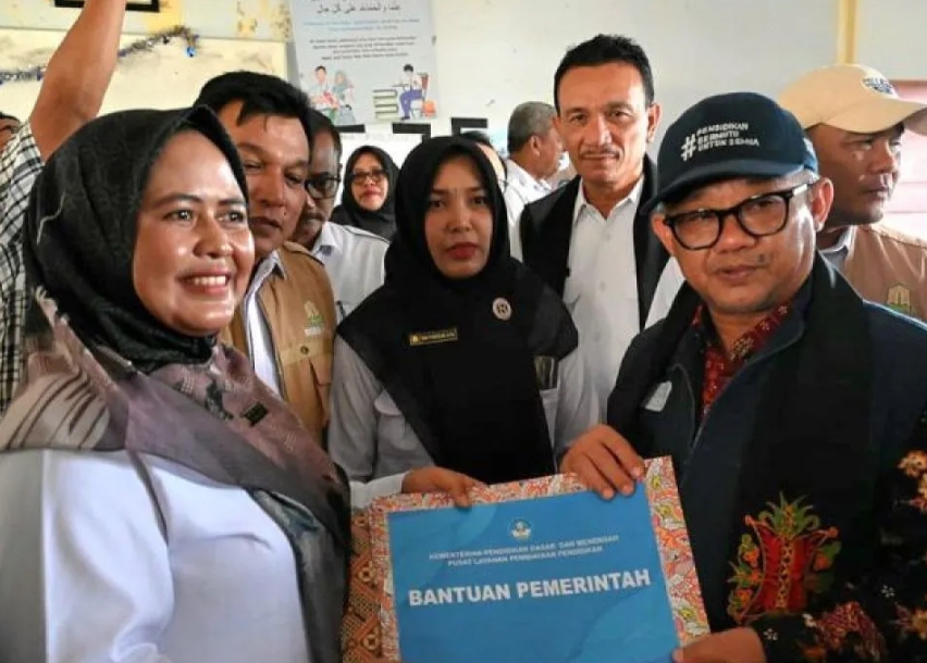 Mendikdasmen menyerahkan bantuan pemerintah (Antara/Kemendikdasmen)