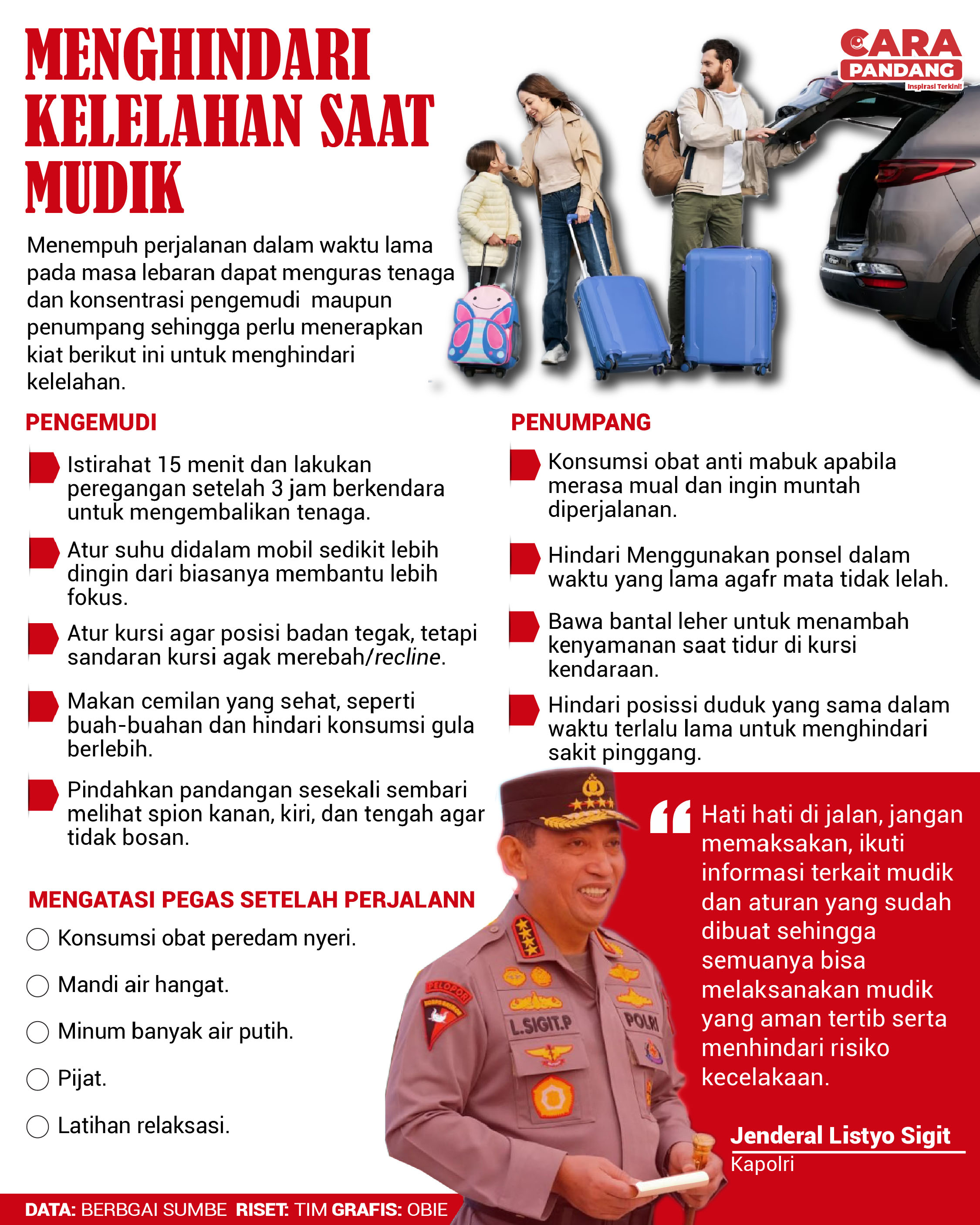 CARAPANDANG - Menempuh perjalanan dalam waktu lama pada masa lebaran dapat menguras tenaga dan konsentrasi pengemudi maupun penumpang sehingga perlu menerapkan kiat berikut ini untuk menghindari kelelahan.