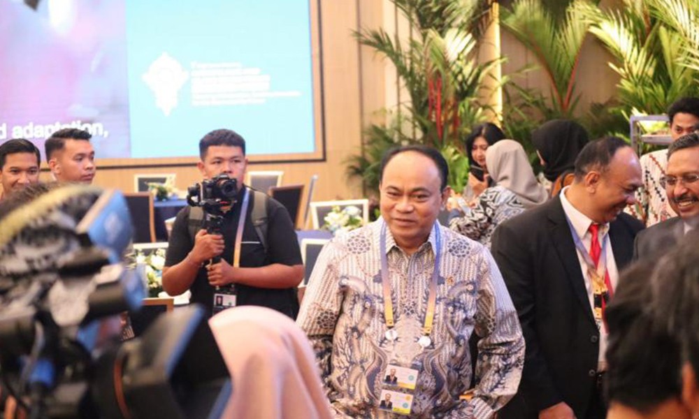 CARAPANDANG - Menteri Komunikasi dan Informatika Budi Arie Setiadi meninjau Media Center Konferensi Tingkat Tinggi (KTT) Archipelagic and Island State (AIS) Forum 2023 di Bali Nusa Dua Convention Center (BNDCC), Badung, Bali, Selasa (10/10/2023).