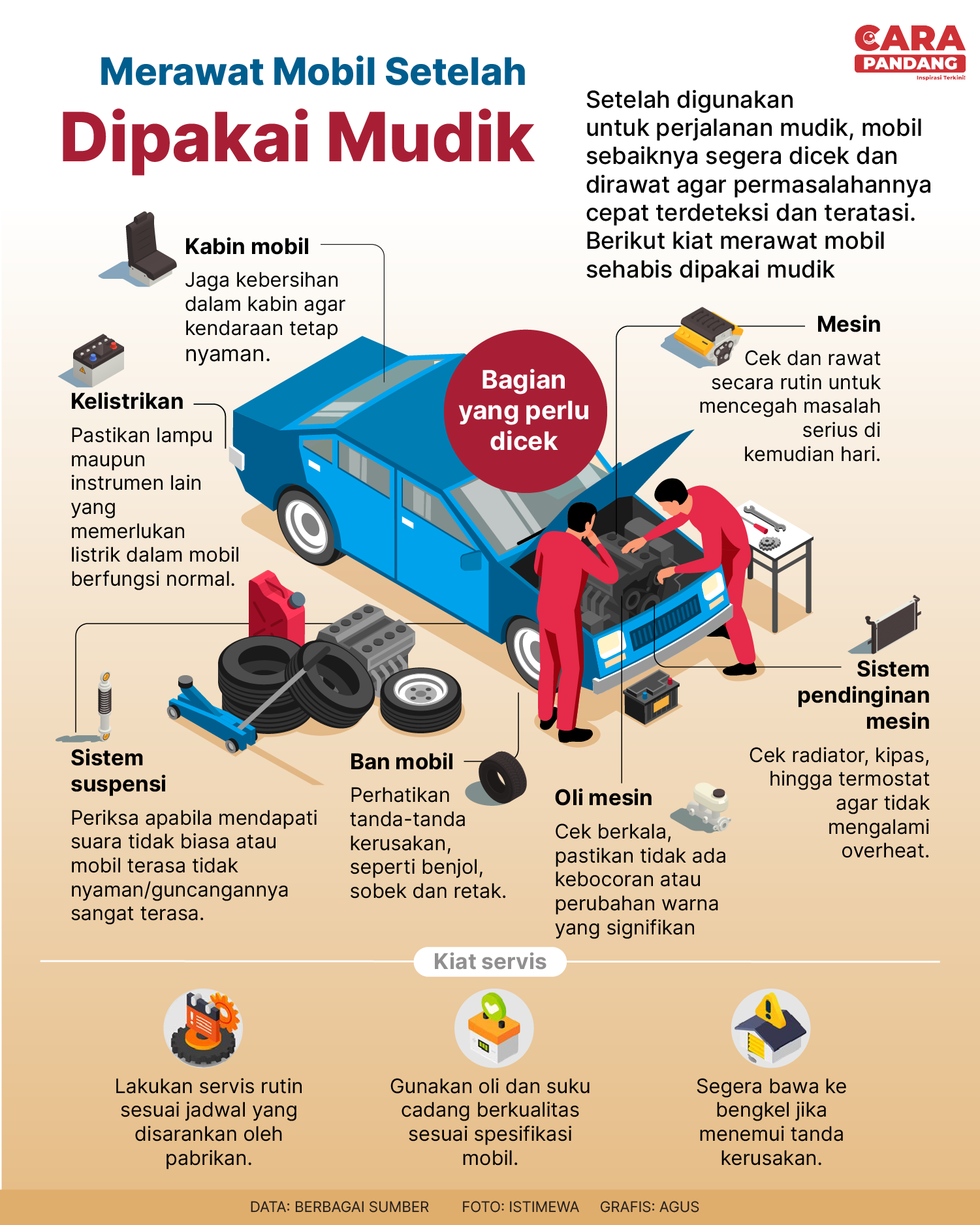 Beranda Infografis Merawat Mobil Setelah Dipakai Mudik Infografis Merawat Mobil Setelah Dipakai Mudik Penulis Amira Izzati - 07 April 2025 18:38 0 CARAPANDANG - Merawat mobil setelah dipakai mudik. Tags Berita Sebelumnya 'A Minecraft Movie' Pecahkan Rekor Pendapatan Akhir Pekan Pertama Tertinggi Berita Berikutnya Indonesia Dalam Dilema Misi Perdamaian Dunia LEAVE A REPLY Cancel reply Comment: Please enter your comment! Name:* Please enter your name here Email:* You have entered an incorrect email address! Please enter your email address here Website: Save my name, email, and website in this browser for the next time I comment. Berita Teratas Kisah Ajaib Nabi Sulaiman dan Anak yang Berbakti kepada Orang Tua 8 Cara Merawat Kucing Kesayangan Agar Tubuhnya Selalu Sehat Minuman yang Mampu Redakan Batuk yang Menganggu Manfaat Ajaib Bawang Putih Bagi Kesehatan 8 Cara Menjaga Kesehatan Gigi dan Mulut yang Efektif Berita Terkait Berita Terkait Wajah Baru PP Tunas: Garda Terdepan Perlindungan Anak Indonesia Zoel Rachman - 31 Maret 2026 09:42 MBG 5 Hari Sepekan Masih Wacana Maliq - 30 Maret 2026 11:49 Presiden Ingin Semua Kendaraan Dikonversi ke Listrik Maliq - 30 Maret 2026 11:48 Kewaijiban PSE Terhadap Pengguna Anak Maliq - 30 Maret 2026 11:15
