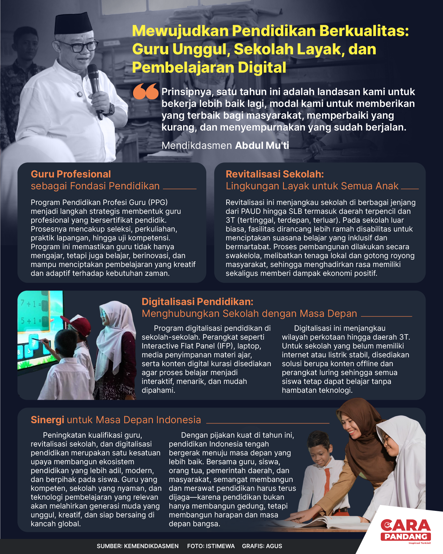 Beranda Infografis Mewujudkan Pendidikan Berkualitas Infografis Mewujudkan Pendidikan Berkualitas Penulis Amira Izzati - 24 Oktober 2025 07:38 0 Mewujudkan Pendidikan Berkualitas Tags Berita Sebelumnya Siap Nyapres di Usia 80 Tahun, Presiden Brasil: Energi Saya Masih Usia 30 Tahun Berita Berikutnya Indonesia Dalam Dilema Misi Perdamaian Dunia LEAVE A REPLY Cancel reply Comment: Please enter your comment! Name:* Please enter your name here Email:* You have entered an incorrect email address! Please enter your email address here Website: Save my name, email, and website in this browser for the next time I comment. Berita Teratas Kisah Ajaib Nabi Sulaiman dan Anak yang Berbakti kepada Orang Tua 8 Cara Merawat Kucing Kesayangan Agar Tubuhnya Selalu Sehat Minuman yang Mampu Redakan Batuk yang Menganggu Manfaat Ajaib Bawang Putih Bagi Kesehatan 8 Cara Menjaga Kesehatan Gigi dan Mulut yang Efektif Berita Terkait Berita Terkait Wajah Baru PP Tunas: Garda Terdepan Perlindungan Anak Indonesia Zoel Rachman - 31 Maret 2026 09:42 MBG 5 Hari Sepekan Masih Wacana Maliq - 30 Maret 2026 11:49 Presiden Ingin Semua Kendaraan Dikonversi ke Listrik Maliq - 30 Maret 2026 11:48 Kewaijiban PSE Terhadap Pengguna Anak Maliq - 30 Maret 2026 11:15