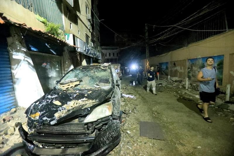 Sebuah kendaraan yang rusak terlihat di tepi jalan pascaserangan Israel yang menghantam sebuah bangunan di pinggiran selatan Beirut, Lebanon, pada 30 Juli 2024. (Xinhua/Bilal Jawich)
