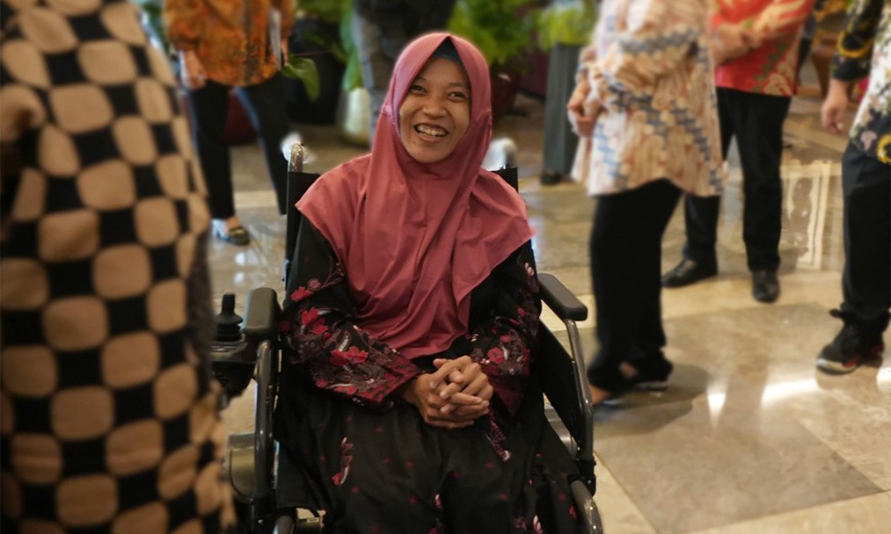 CARAPANDANG - Sudah lama, Leni Herlina (28) memimpikan memiliki kursi roda elektrik yang dapat digerakkan sendiri. Leni tidak menyangka mimpinya terwujud setelah datang ke Kementerian Sosial, dan kursi roda elektrik diserahkan langsung oleh Menteri Sosial Tri Rismaharini. Tidak hanya itu, Leni juga diajak Mensos Risma office tour mengelilingi Kementerian Sosial dengan kursi roda barunya, dan melihat karya-karya penyandang disabilitas yang dipajang di Kemensos.