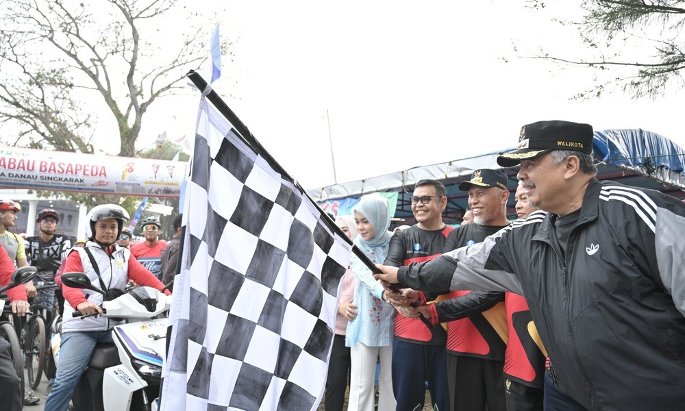 SUMBAR, CARAPANDANG.COM - Gubernur Sumatera Barat (Sumbar) Mahyeldi Ansharullah melepas ribuan peserta acara Minangkabau Basepeda Salingka Danau Singkarak di Dermaga Singkarak, Sabtu (30/9/2023). Gubernur mengatakan, melihat tingginya keterlibatan masyarakat luar Sumbar dalam acara ini, menandakan tujuan daerah dalam mempromosikan potensi lokal melalui penyelenggaraan even beskala nasional tercapai.