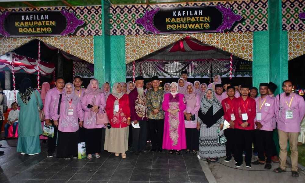 Usai pembukaan Musabaqah Tilawatil Qur’an (MTQ) XI Tingkat Provinsi Gorontalo di Arena Utama Taman Menara Limboto, Kabupaten Gorontalo, Bupati Pohuwato, Saipul A. Mbuinga bersama Ketua Tim Penggerak PKK Pohuwato, Selvi Mbuinga Monoarfa menemui kafilah utu