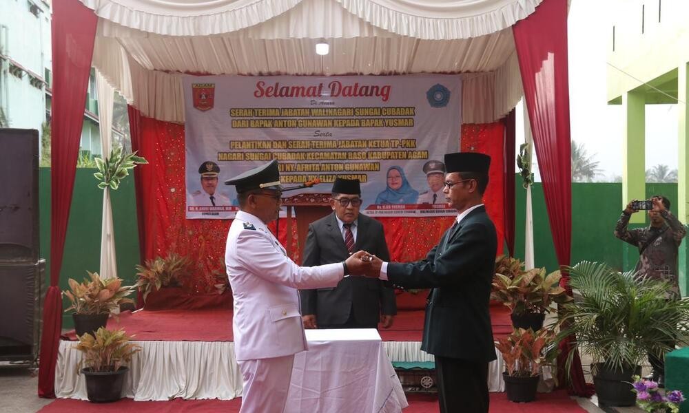AGAM, CARAPANDANG.COM - Salah satu nagari hasil pemekaran yang ada di Kabupaten Agam lakukan serah terima jabatan (sertijab) adalah Walinagari Sungai Cubadak, Kecamatan Baso.