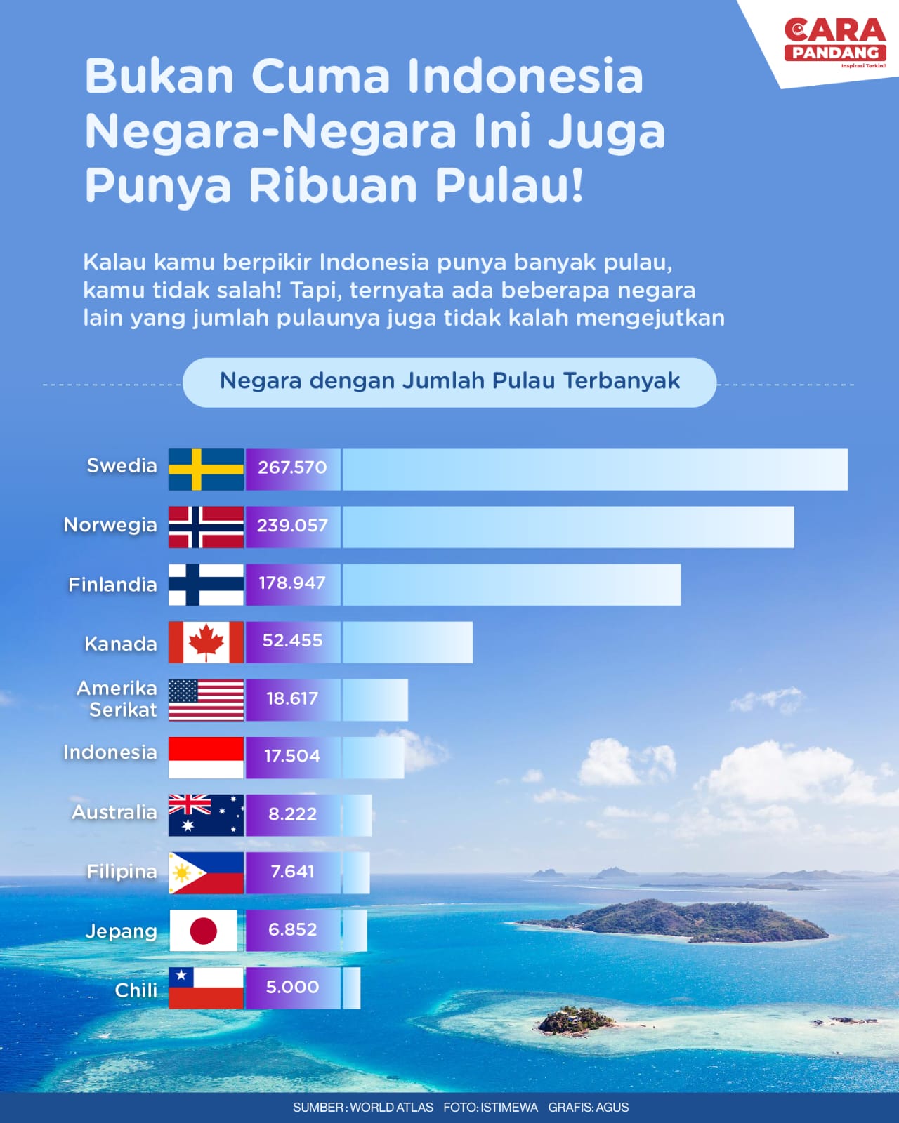 Beranda Infografis Negara dengan Ribuan Pulau Infografis Negara dengan Ribuan Pulau Penulis Amira Izzati - 24 Juni 2025 07:00 0 Negara dengan Ribuan Pulau Tags Berita Sebelumnya Kabar Baik dari Wagub Vasko, Pemprov Sumbar Akan Hapus Tunggakan Pajak Kendaraan Berita Berikutnya Indonesia Dalam Dilema Misi Perdamaian Dunia LEAVE A REPLY Cancel reply Comment: Please enter your comment! Name:* Please enter your name here Email:* You have entered an incorrect email address! Please enter your email address here Website: Save my name, email, and website in this browser for the next time I comment. Berita Teratas Kisah Ajaib Nabi Sulaiman dan Anak yang Berbakti kepada Orang Tua 8 Cara Merawat Kucing Kesayangan Agar Tubuhnya Selalu Sehat Minuman yang Mampu Redakan Batuk yang Menganggu Manfaat Ajaib Bawang Putih Bagi Kesehatan 8 Cara Menjaga Kesehatan Gigi dan Mulut yang Efektif Berita Terkait Berita Terkait Wajah Baru PP Tunas: Garda Terdepan Perlindungan Anak Indonesia Zoel Rachman - 31 Maret 2026 09:42 MBG 5 Hari Sepekan Masih Wacana Maliq - 30 Maret 2026 11:49 Presiden Ingin Semua Kendaraan Dikonversi ke Listrik Maliq - 30 Maret 2026 11:48 Kewaijiban PSE Terhadap Pengguna Anak Maliq - 30 Maret 2026 11:15