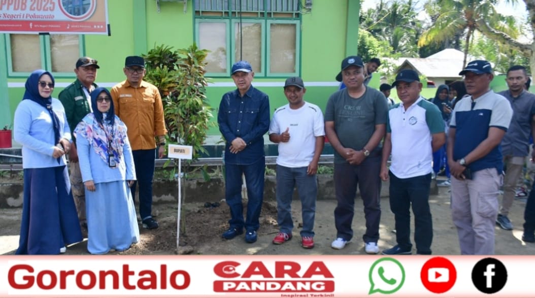 Penanaman pohon yang dilakukan di halaman MTsN 1 Pohuwato secara simbolis dilakukan Bupati Pohuwato, Saipul A. Mbuinga, Camat Paguat, Ikbal Mbuinga, serta Ketua Komite Sekolah, Nakir Ismail, Kamis, (01/05/2025).
