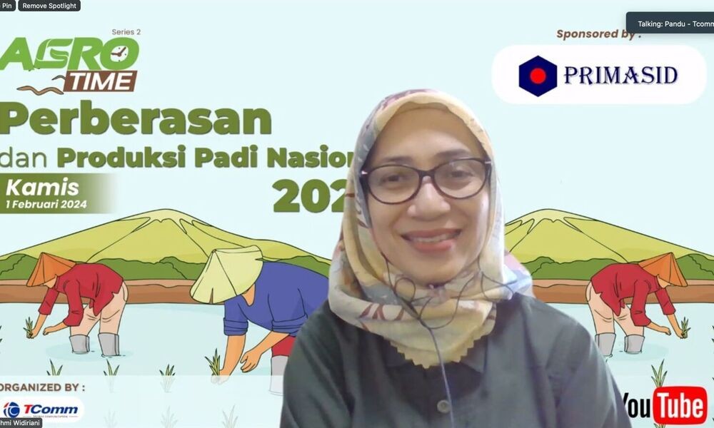 Direktur Distribusi dan Cadangan Pangan NFA, Rachmi Widiriani menjadi salah satu pembicara di AgroTime Series #2 dengan tema Perberasan dan Produksi Padi Nasional yang dilaksanakan secara live streaming (01/02).
