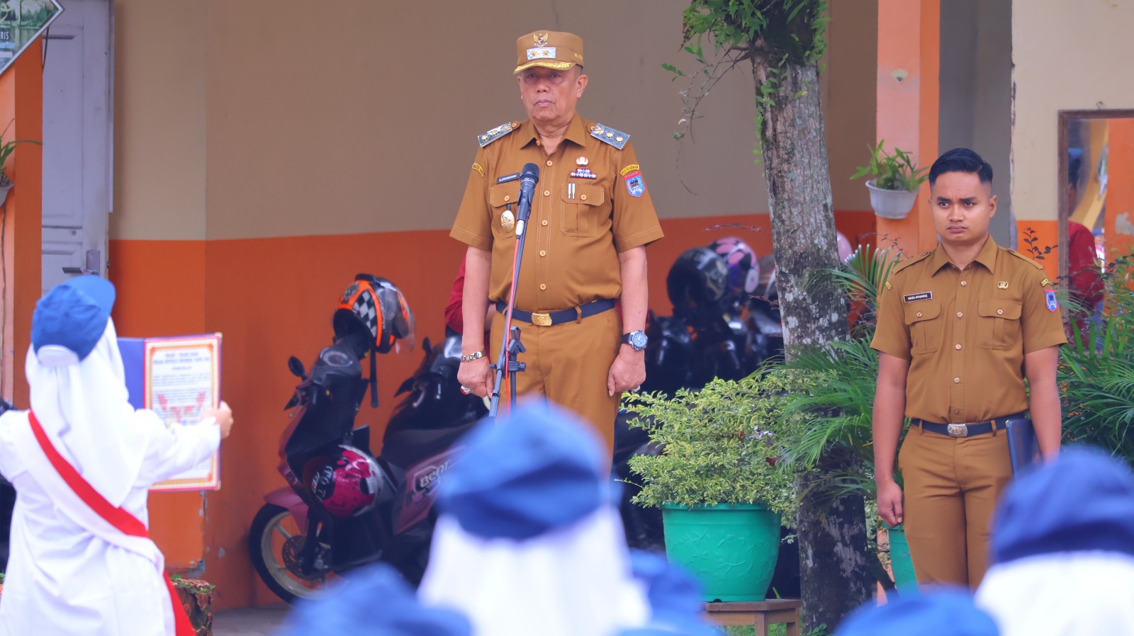 “Pelaksanaan upacara pagi ini sungguh luar biasa. Saya memberi apresiasi khusus kepada komandan upacara dan pasukan pengibar bendera. Ini tentu tidak lepas dari peran guru hebat yang terus membina dan membimbing anak-anak kita,” ucap Om Zet di hadapan para siswa dan tenaga pendidik.