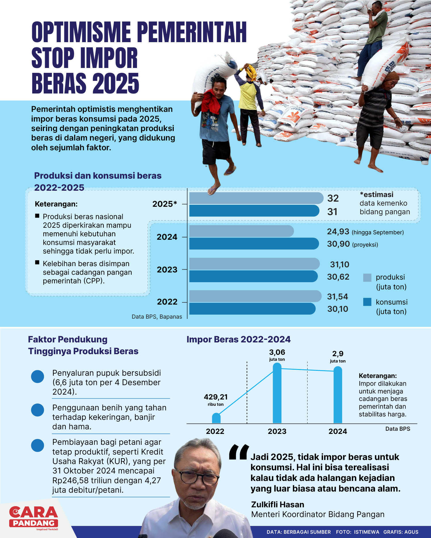 Beranda Infografis Optimisme Pemerintah Stop Impor Beras 2025 Infografis Optimisme Pemerintah Stop Impor Beras 2025 Penulis Amira Izzati - 13 Desember 2024 11:39 0 CARAPANDANG - Optimisme Pemerintah Stop Impor Beras 2025 Tags Berita Sebelumnya Indonesia Juara FIFAe World Cup 2024 Berita Berikutnya Indonesia Dalam Dilema Misi Perdamaian Dunia LEAVE A REPLY Cancel reply Comment: Please enter your comment! Name:* Please enter your name here Email:* You have entered an incorrect email address! Please enter your email address here Website: Save my name, email, and website in this browser for the next time I comment. Berita Teratas Kisah Ajaib Nabi Sulaiman dan Anak yang Berbakti kepada Orang Tua 8 Cara Merawat Kucing Kesayangan Agar Tubuhnya Selalu Sehat Minuman yang Mampu Redakan Batuk yang Menganggu Manfaat Ajaib Bawang Putih Bagi Kesehatan 8 Cara Menjaga Kesehatan Gigi dan Mulut yang Efektif Berita Terkait Berita Terkait Wajah Baru PP Tunas: Garda Terdepan Perlindungan Anak Indonesia Zoel Rachman - 31 Maret 2026 09:42 MBG 5 Hari Sepekan Masih Wacana Maliq - 30 Maret 2026 11:49 Presiden Ingin Semua Kendaraan Dikonversi ke Listrik Maliq - 30 Maret 2026 11:48 Kewaijiban PSE Terhadap Pengguna Anak Maliq - 30 Maret 2026 11:15