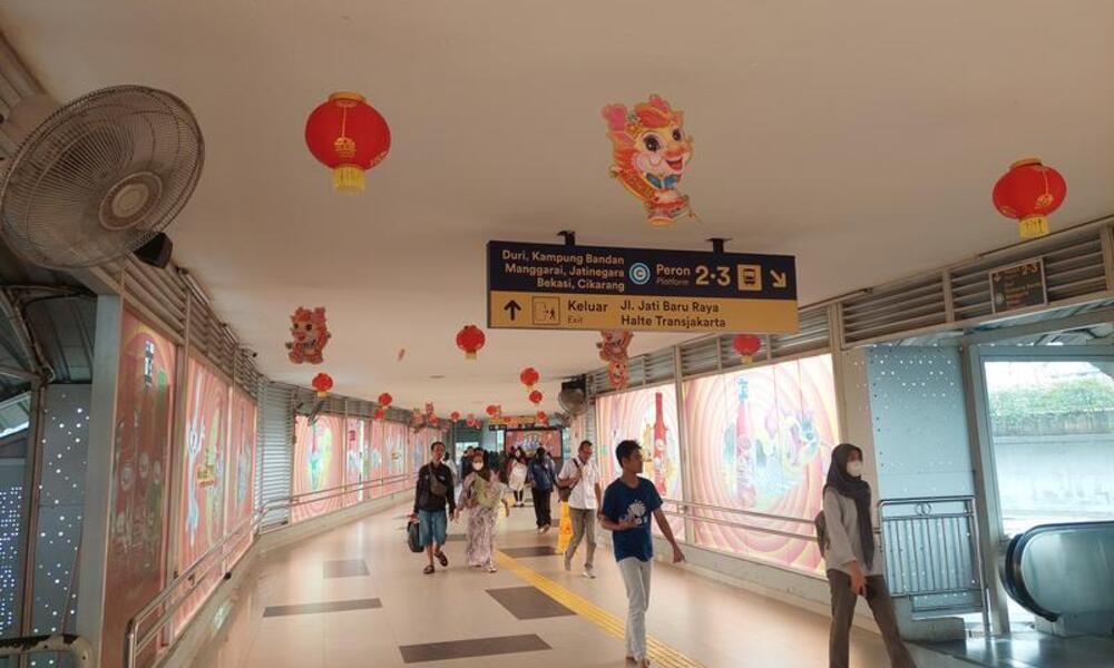 CARAPANDANG - Dekorasi lampion merah dan ornamen bergambar naga menghiasi plafon di beberapa stasiun kereta di Jakarta, menghadirkan suasana baru dan antusiasme menjelang Tahun Baru Imlek yang akan berlangsung pada akhir pekan ini.