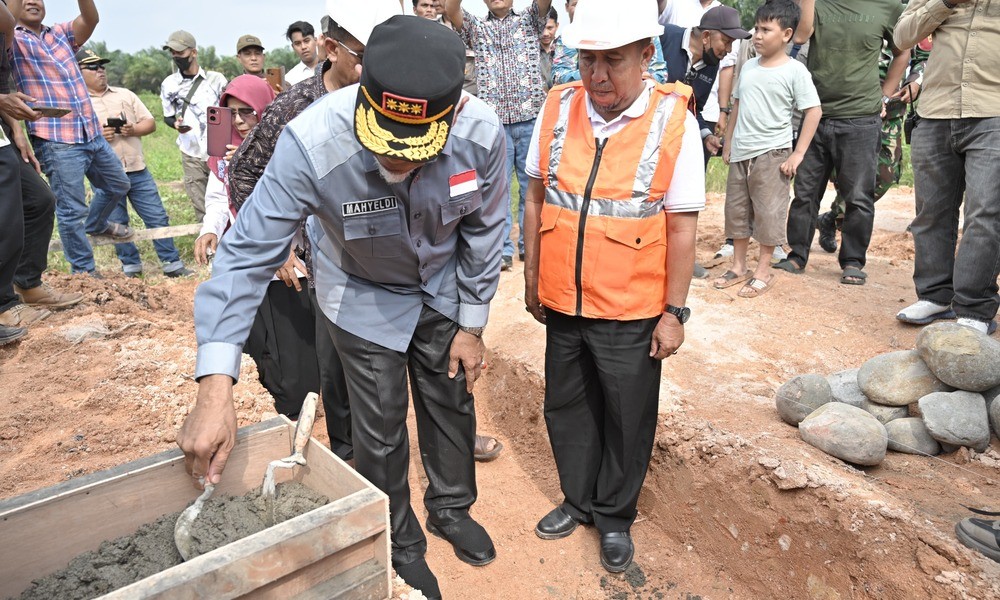SUMBAR, CARAPANDANG.COM - Gubernur Sumatera Barat (Sumbar), Mahyeldi Ansharullah melakukan peletakan batu pertama pembangunan Unit Sekolah Baru (USB) SMK Negeri 1 Sungai Beremas, Kabupaten Pasaman Barat, Kamis (28/9/2023). Ditargetkan, sekolah kejuruan perkapalan dan pertambangan ini tuntas dibangun dalam waktu dekat sehingga dapat beroperasi pada tahun ajaran 2024/2025.