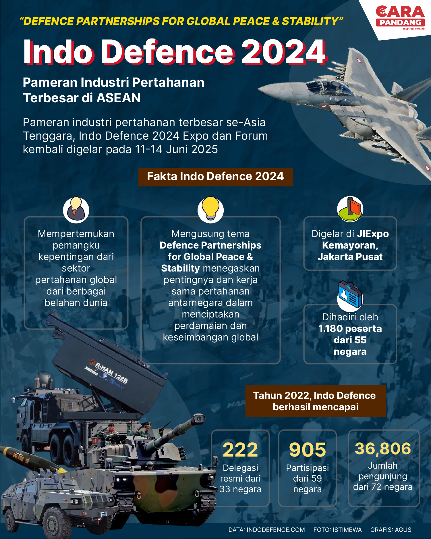 Beranda Infografis Pameran Industri Pertahanan Indo Defence 2024 Infografis Pameran Industri Pertahanan Indo Defence 2024 Penulis Amira Izzati - 14 Juni 2025 12:02 0 Pameran Industri Pertahanan Indo Defence 2024 Tags Berita Sebelumnya China Minta Israel-Iran Dapat Hindari Eskalasi Ketegangan Berita Berikutnya Indonesia Dalam Dilema Misi Perdamaian Dunia LEAVE A REPLY Cancel reply Comment: Please enter your comment! Name:* Please enter your name here Email:* You have entered an incorrect email address! Please enter your email address here Website: Save my name, email, and website in this browser for the next time I comment. Berita Teratas Kisah Ajaib Nabi Sulaiman dan Anak yang Berbakti kepada Orang Tua 8 Cara Merawat Kucing Kesayangan Agar Tubuhnya Selalu Sehat Minuman yang Mampu Redakan Batuk yang Menganggu Manfaat Ajaib Bawang Putih Bagi Kesehatan 8 Cara Menjaga Kesehatan Gigi dan Mulut yang Efektif Berita Terkait Berita Terkait Wajah Baru PP Tunas: Garda Terdepan Perlindungan Anak Indonesia Zoel Rachman - 31 Maret 2026 09:42 MBG 5 Hari Sepekan Masih Wacana Maliq - 30 Maret 2026 11:49 Presiden Ingin Semua Kendaraan Dikonversi ke Listrik Maliq - 30 Maret 2026 11:48 Kewaijiban PSE Terhadap Pengguna Anak Maliq - 30 Maret 2026 11:15