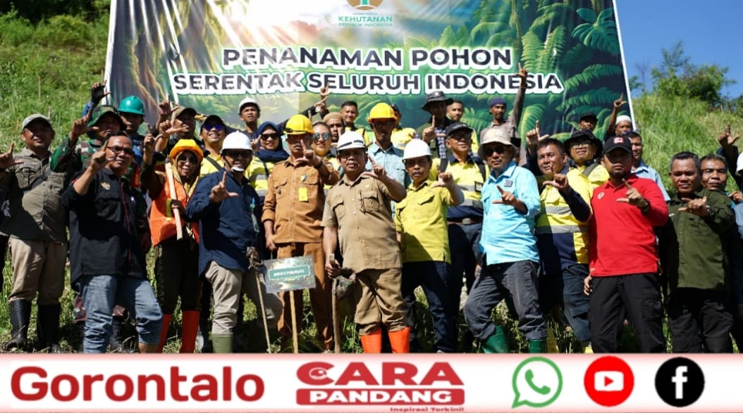 POHUWATO, CARAPANDANG - Pani Gold Project, proyek tambang emas yang dikelola PT Merdeka Copper Gold Tbk., berpartisipasi dalam kegiatan Penanaman Pohon Serentak Seluruh Indonesia tingkat Provinsi Gorontalo yang dilaksanakan di Desa Malango, Kecamatan Taluditi, Kabupaten Pohuwato Selasa, 14 Januari 2025.