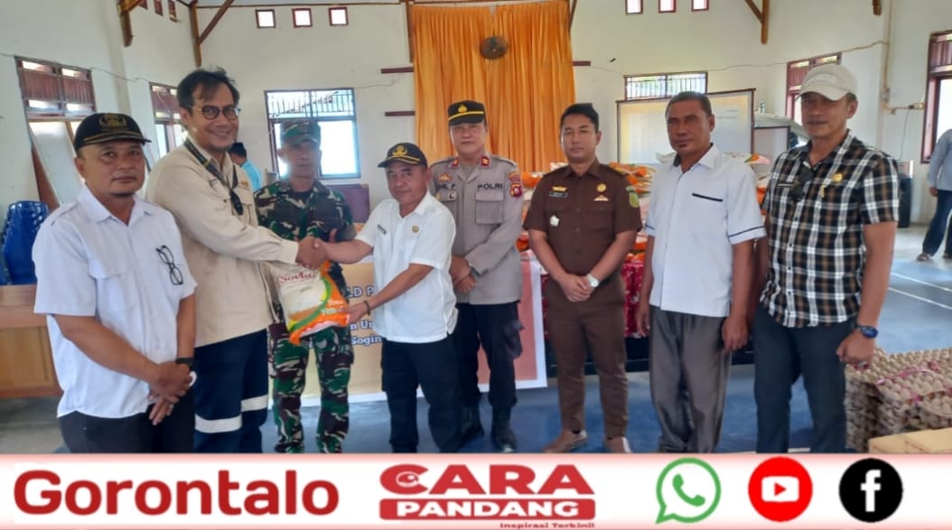 Penyerahan bantuan kemanusiaan Pani Gold Project disaksikan oleh Kapolres Pohuwato AKBP Winarno, Danramil Paguat dan Badan Penanggulangan Bencana Daerah (BPBD) yang sekaligus meninjau beberapa titik lokasi bencana dan dapur umum.