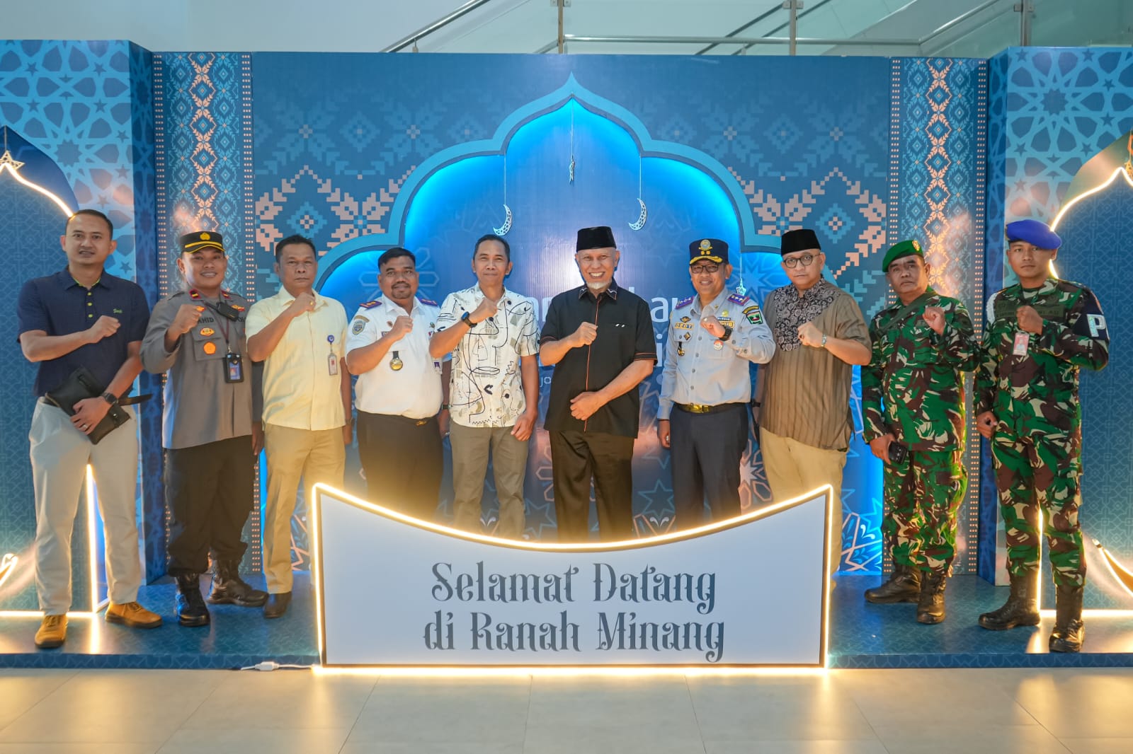 SUMBAR, CARAPANDANG - Gubernur Sumatera Barat (Sumbar), Mahyeldi Ansharullah meninjau langsung arus mudik Lebaran 1447 Hijriah di Bandara Internasional Minangkabau (BIM), Kabupaten Padang Pariaman, Kamis (19/3/2026). Peninjauan itu dilakukannya usai meresmikan penerapan sistem one way di jalur Padang–Bukittinggi.