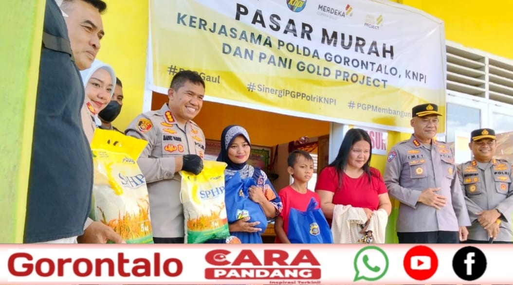 POHUWATO, CARAPANDANG - Senyum bahagia tampak terpancar dari wajah ratusan warga Kecamatan Buntulia, Kabupaten Pohuwato, saat mengikuti Pasar Murah yang digelar Polda Gorontalo bersama KNPI dan PT. Pani Gold Project, Minggu (21/9/2025).