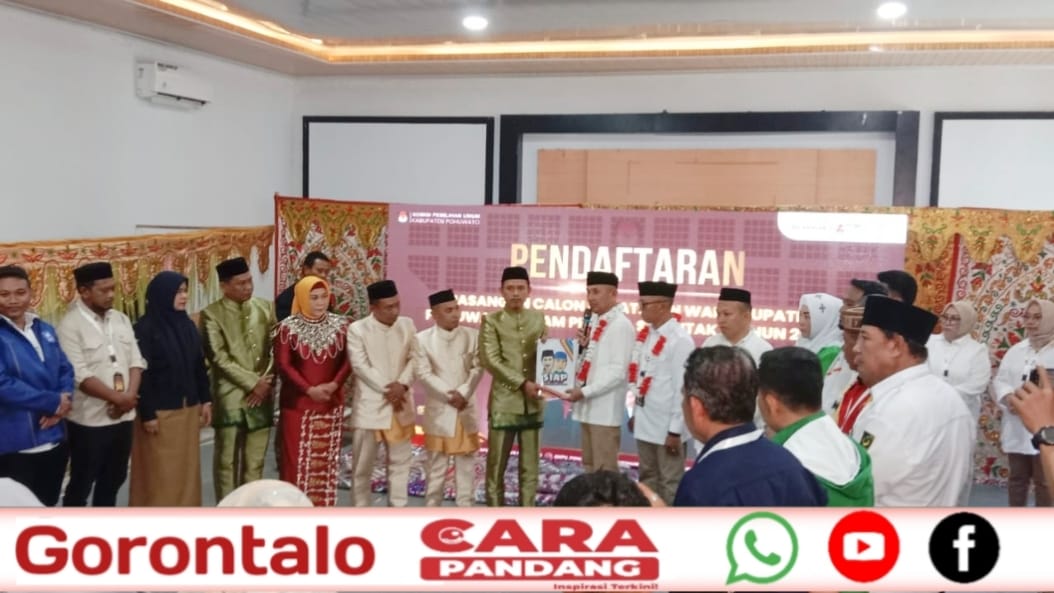 POHUWATO, CARAPANDANG - Pasangan Saipul A. Mbuinga - Iwan S. Adam Resmi mendaftarkan diri ke Komisi Pemilihan Umum (KPU) sebagai calon Bupati dan Wakil Bupati Pohuwato pada perhelatan politik Pemilihan Kepala Daerah (Pilkada) 2024.