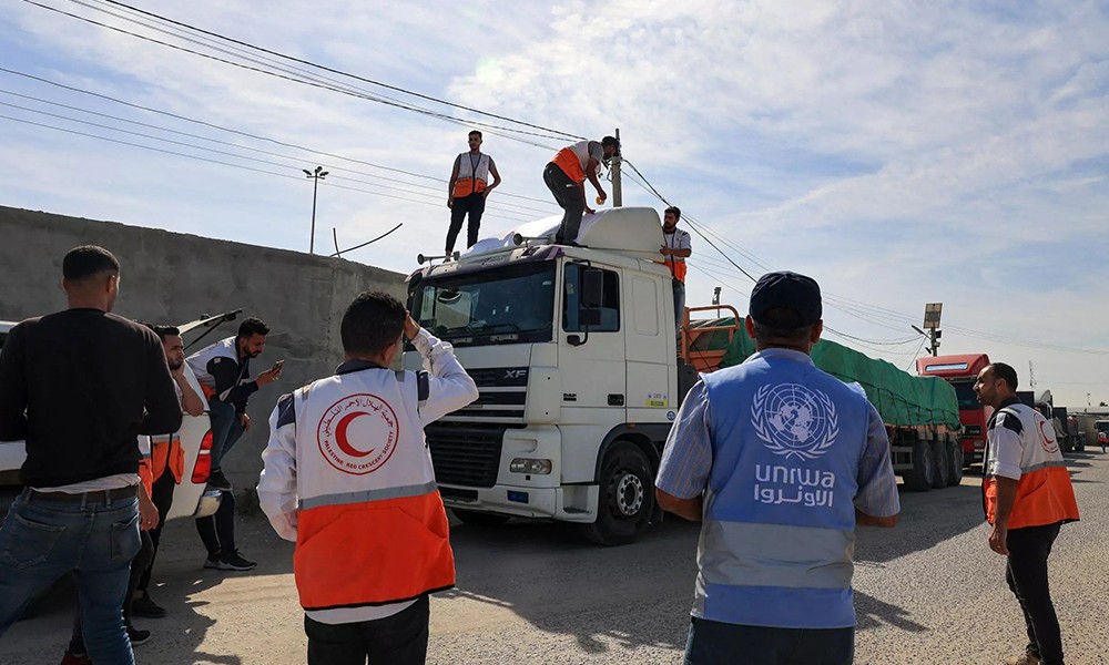 Kantor Koordinasi Urusan Kemanusiaan (Office for the Coordination of Humanitarian Affairs/OCHA) PBB mengatakan 20 truk telah melintasi titik perbatasan Rafah menuju Gaza pada Senin. Separuh dari rombongan truk tersebut membawa bantuan dari PBB berupa air, makanan, dan obat-obatan.