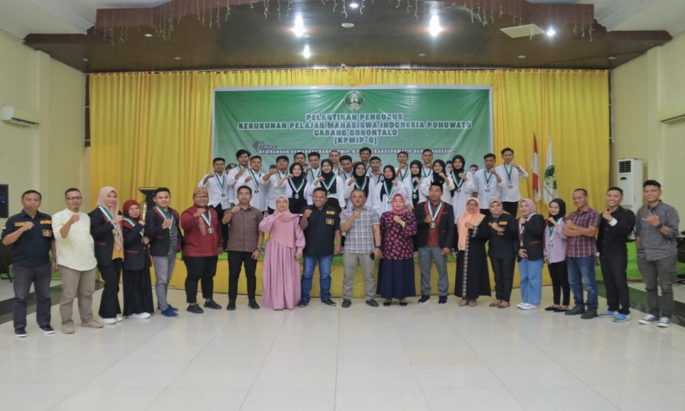 POHUWATO, CARAPANDANG.COM - Wakil Bupati Pohuwato, Suharis Igirisa hadiri Pelantikan Pengurus Kerukunan Pelajar Mahasiswa Indonesia Pohuwato Cabang Gorontalo (KPMIP-G) periode 2023 - 2024. Pelantikan Pengurus KPMI-G yang mengusung tema "Membangun Semangat Baru KPMIP-G yang Transformatif dan Progresif" berlangsung di gedung pan ua kantor bupati, Rabu, (12/7/2023).