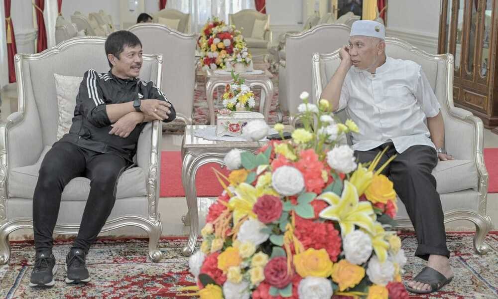 SUMBAR, CARAPANDANG.COM - Pelatih Timnas Indonesia U-22, Indra Sjafri sambangi Istana Gubernur Sumatera Barat (Sumbar). Kedatangannya itu, dalam rangka bersilaturahmi sekaligus mengucapkan terima kasih atas do'a dan dukungan dari seluruh masyarakat kepada Timnas Indonesia selama menjalani laga SEA Games 2023 di Kamboja.