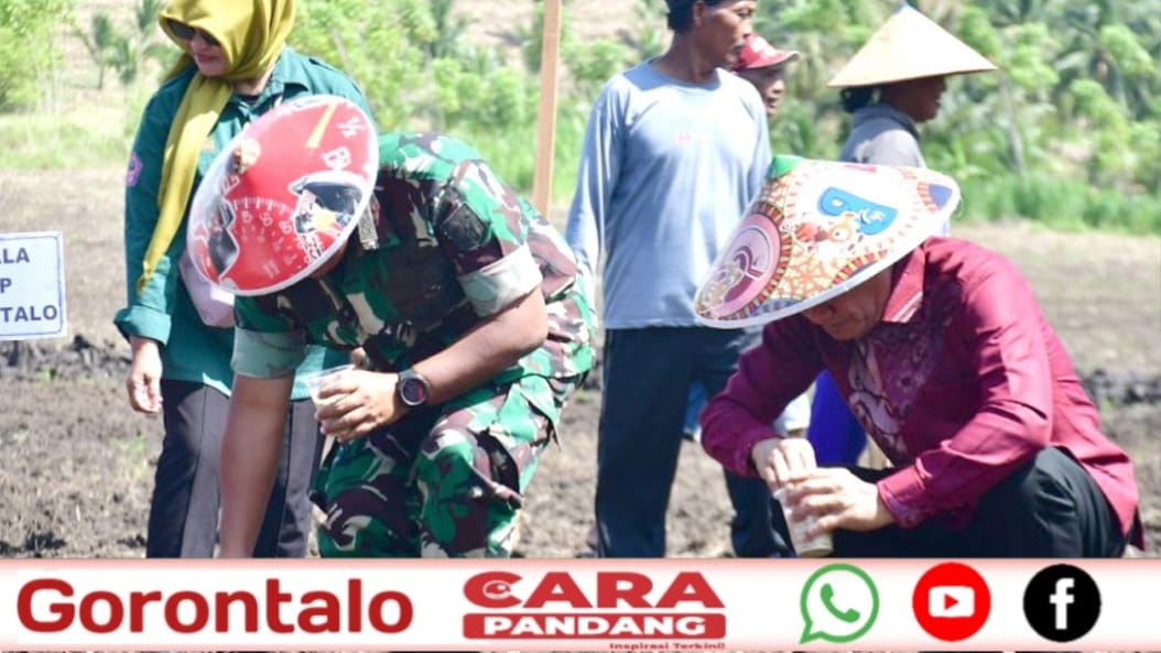 POHUWATO, CARAPANDANG - Pemda Pohuwato dalam hal ini Dinas Pertanian telah giat-giatnya melakukan penanaman padi gogo di wilayah Kabupaten Pohuwato. Saat ini, penanaman padi gogo oleh Pemda Pohuwato bersama Polres Pohuwato dilakukan di kebun bhayangkara Polsek Randangan yang dihadiri Bupati Pohuwato, Saipul A. Mbuinga, Dandim 1313 Pohuwato, Kepala BSIP Provinsi, Kadis Pertanian, Camat Randangan, Kapolsek Randangan, Kamis, (05/09/2024).