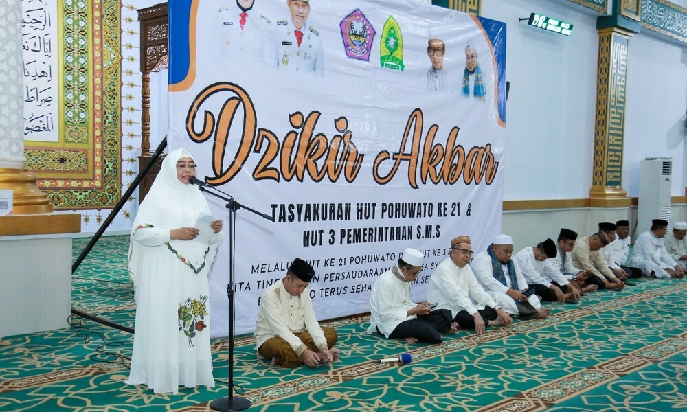 “Tidak lupa kita juga merayakan moment penting yakni 3 tahun Pemerintahan SMS. Dalam moment ini, mari kita bersama-sama menghadirkan zikir akbar sebagai ungkapan syukur kepada Allah SWT yang telah memberikan limpahan rahmat dan kemakmuran kepada kita sebagai masyarakat Pohuwato. Zikir akbar juga ini menjadi wadah kita untuk memohon ampunan, rahmat, serta petunjuk dari-Nya agar kita senantiasa diberikan kekuatan dan kearifan dalam menjalani kehidupan bermasyarakat, berbangsa dan bernegara”,ungkap wabup.