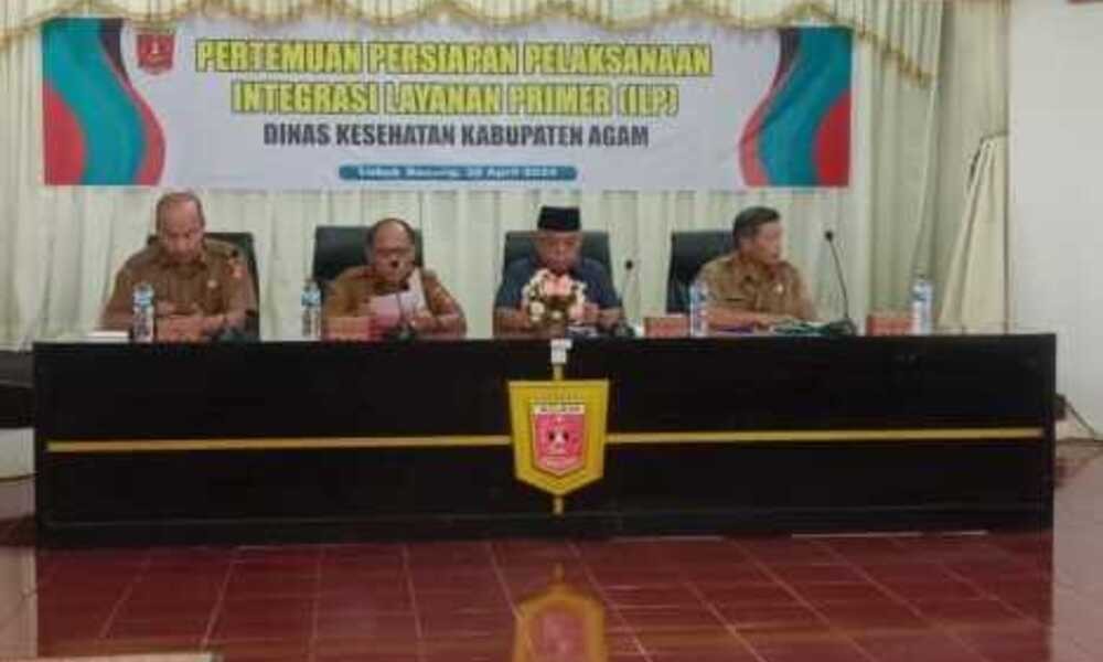 AGAM, CARAPANDANG.COM - Dalam mewujudkan Pemerintahan yang efektif, efisien dan melayani, Pemerintah Kabupaten Agam selenggarakan Pertemuan Persiapan Pelaksanaan Integrasi Layanan Primer (ILP) di Aula Utama Kantor Bupati Agam, Selasa (30/4).