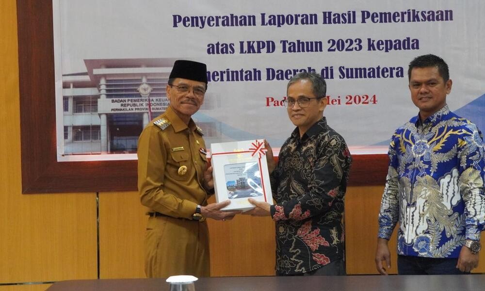Opini WTP disampaikan saat penyerahan langsung Laporan Hasil Pemeriksaan (LHP) Laporan Keuangan Pemerintah Daerah (LKPD) Tahun 2023 oleh Kepala BPK Perwakilan Sumatera Barat Arif Agus kepada Bupati Lima Puluh Kota Safaruddin Dt. Bandaro Rajo, Selasa (07/05/2024) di Aula Lantai IV, Gedung BPK RI Perwakilan Sumbar, Jalan Khatib Sulaiman, Kota Padang.