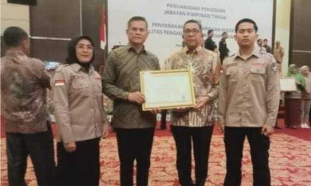 Penghargaan tersebut diserahkan Komisioner KASN Bidang Pengisian JPT Agustinus Fatem dan diterima langsung oleh Penjabat Sekda Herman Azmar di dampingi Kepala BKPSDM Adrian Wahyudi, Selasa (27/02/2024) di Hotel Grand Suka Pekanbaru.