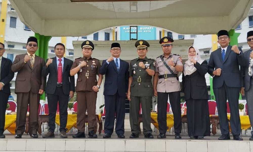 Mengusung tema “Otonomi Daerah Berkelanjutan Menuju Ekonomi Hijau dan Lingkungan Yang Sehat”, Bupati Limapuluh Kota diwakili Asisten Administrasi Umum Azuhdi Perama Putra memimpin jalannya upacara. Turut hadir Forkopimda, Staf Ahli Bupati, para Asisten, Pimpinan Perangkat Daerah, Camat, serta Jajaran ASN di lingkungan Pemkab Limapuluh Kota.