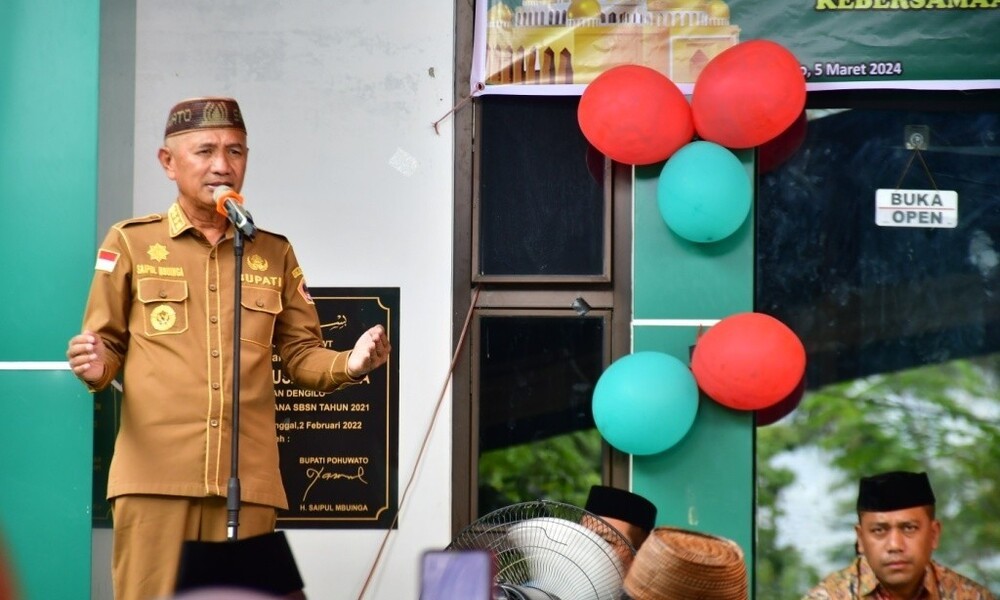 Di hadapan warga ketika menghadiri halal bihalal di Kecamatan Dengilo, Bupati Pohuwato, Saipul A. Mbuinga mengakui bahwa tahun 2024 Kabupaten Pohuwato mendapatkan alokasi anggaran untuk pekerjaan lima ruas jalan, Selasa, (05/03/2024).