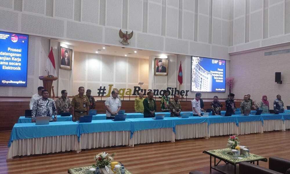 POHUWATO, CARAPANDANG.COM - Sebagai wujud nyata Pemerintah Kabupaten Pohuwato dalam mendukung perkembangan digitalisasi guna meningkatkan kinerja birokrasi di Kabupaten Pohuwato. Maka, melalui Dinas Komunikasi, Informatika dan Statistik (Diskominfo-St) Kabupaten Pohuwato melakukan Penandatanganan Perjanjian Kerja Sama (PKS) dengan Badan Siber dan Sandi Negara (BSSN) dalam pemanfaatan Sertifikat Elektronik bersama dengan pemerintah daerah lainnya, di Gedung BSSN RI, Kota Depok, Jawa Barat, Selasa (25/07/2023).