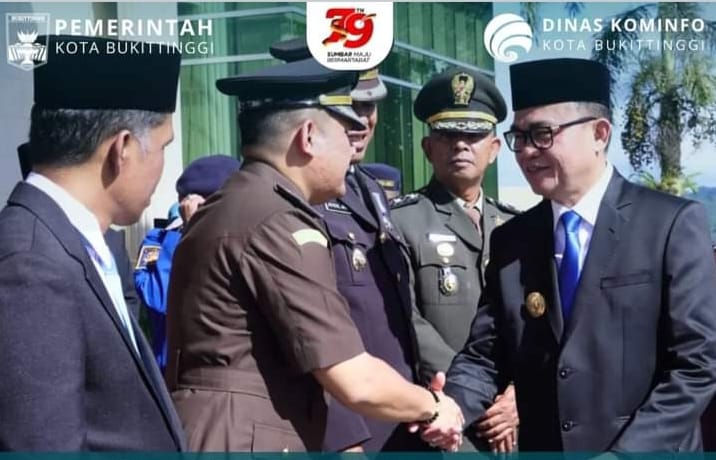 Pjs Wali Kota Bukittinggi, H. Hani Syopiar Rustam, selaku inspektur upacara, diikuti unsur Forkopimda, Plt. Sekretaris Daerah, Asisten, Pjs. Ketua TP PKK, Kepala SKPD dan ASN Kota Bukittinggi.