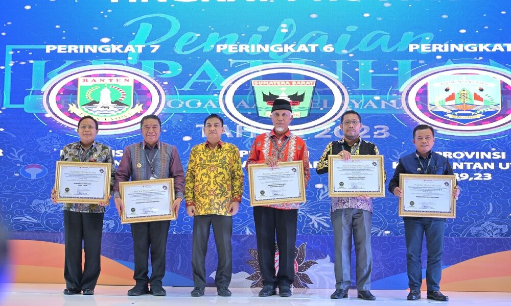 SUMBAR, CARAPANDANG.COM - Pemerintah Provinsi Sumatera Barat (Pemprov Sumbar), menembus jajaran enam besar provinsi dengan Penilaian Kepatuhan Penyelenggaraan Pelayanan Publik tertinggi tahun 2023. Penghargaan atas capaian tersebut diterima Gubernur Sumbar, Mahyeldi Ansharullah, dari Ombudsman RI di Aryaduta Hotel, Jakarta Pusat, Kamis (14/12/2023).