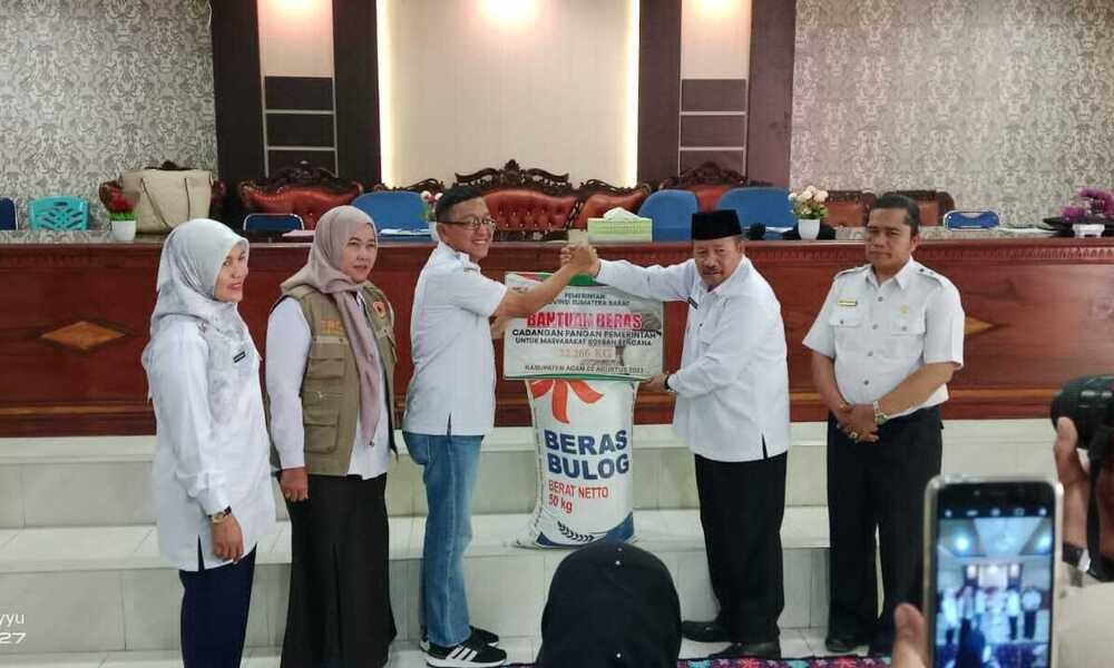 Penyerahan bantuan ini langsung dilakukan oleh Pemerintah Provinsi Sumatera Barat yang diwakili oleh Kepala Dinas Pangan Syaiful Bahri.  Dimana penyerahan secara simbolis diterima oleh Bupati Agam Andri Warman (2/8/2023).
