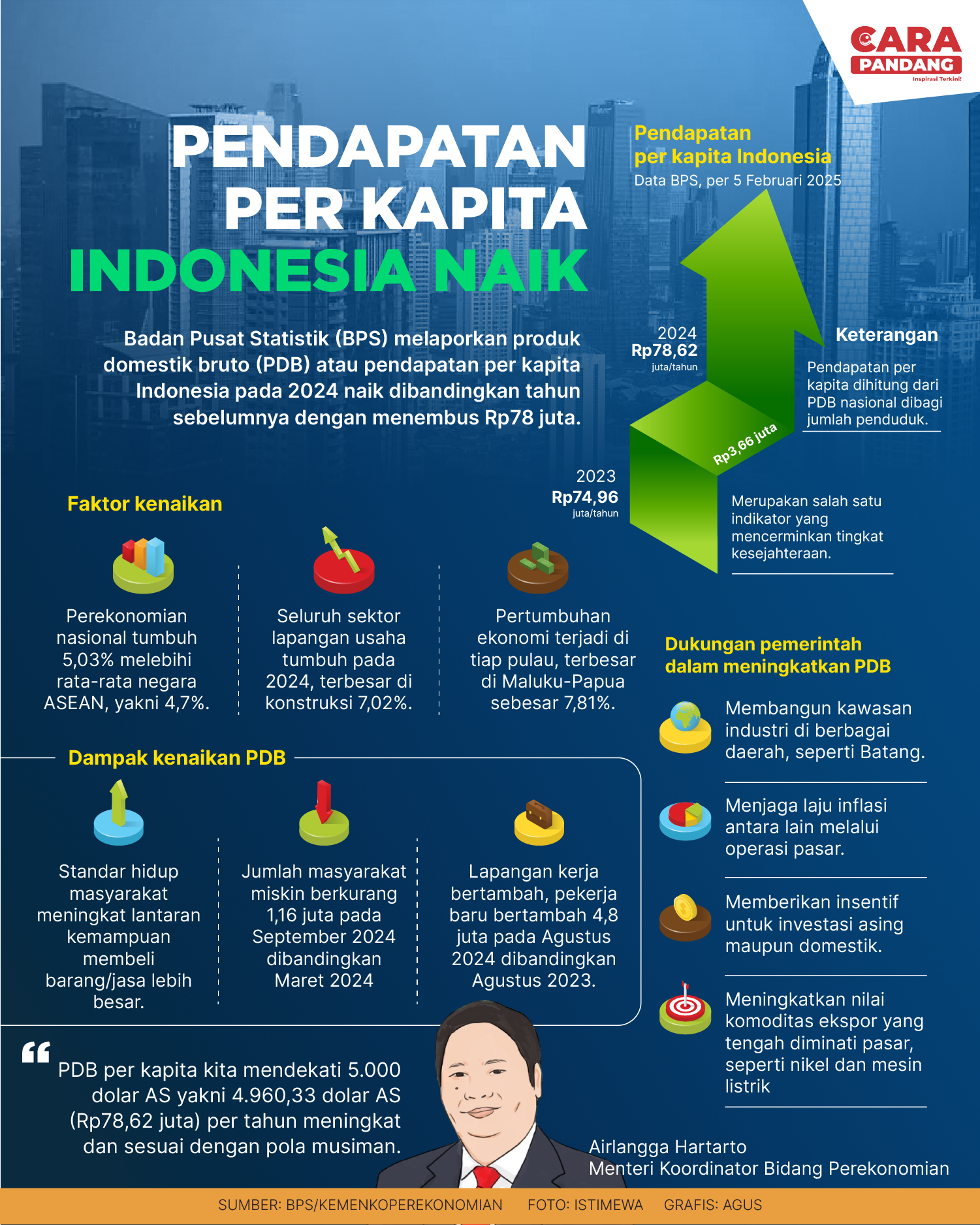 Beranda Infografis Pendapatan Perkapita Indonesia Naik Infografis Pendapatan Perkapita Indonesia Naik Pendapatan Perkapita Indonesia Naik. Penulis Zoel Rachman - 13 Februari 2025 07:54 0 CARAPANDANG.COM - Pendapatan Perkapita Indonesia Naik. Tags Pendapatan Perkapita Indonesia Naik Berita Sebelumnya Wabup Suharsi Sambut Hangat Kunjungan Pangdam XIII/Merdeka Mayjen TNI Suhardi Berita Berikutnya Indonesia Dalam Dilema Misi Perdamaian Dunia LEAVE A REPLY Cancel reply Comment: Please enter your comment! Name:* Please enter your name here Email:* You have entered an incorrect email address! Please enter your email address here Website: Save my name, email, and website in this browser for the next time I comment. Berita Teratas Kisah Ajaib Nabi Sulaiman dan Anak yang Berbakti kepada Orang Tua 8 Cara Merawat Kucing Kesayangan Agar Tubuhnya Selalu Sehat Minuman yang Mampu Redakan Batuk yang Menganggu Manfaat Ajaib Bawang Putih Bagi Kesehatan 8 Cara Menjaga Kesehatan Gigi dan Mulut yang Efektif Berita Terkait Berita Terkait Wajah Baru PP Tunas: Garda Terdepan Perlindungan Anak Indonesia Zoel Rachman - 31 Maret 2026 09:42 MBG 5 Hari Sepekan Masih Wacana Maliq - 30 Maret 2026 11:49 Presiden Ingin Semua Kendaraan Dikonversi ke Listrik Maliq - 30 Maret 2026 11:48 Kewaijiban PSE Terhadap Pengguna Anak Maliq - 30 Maret 2026 11:15