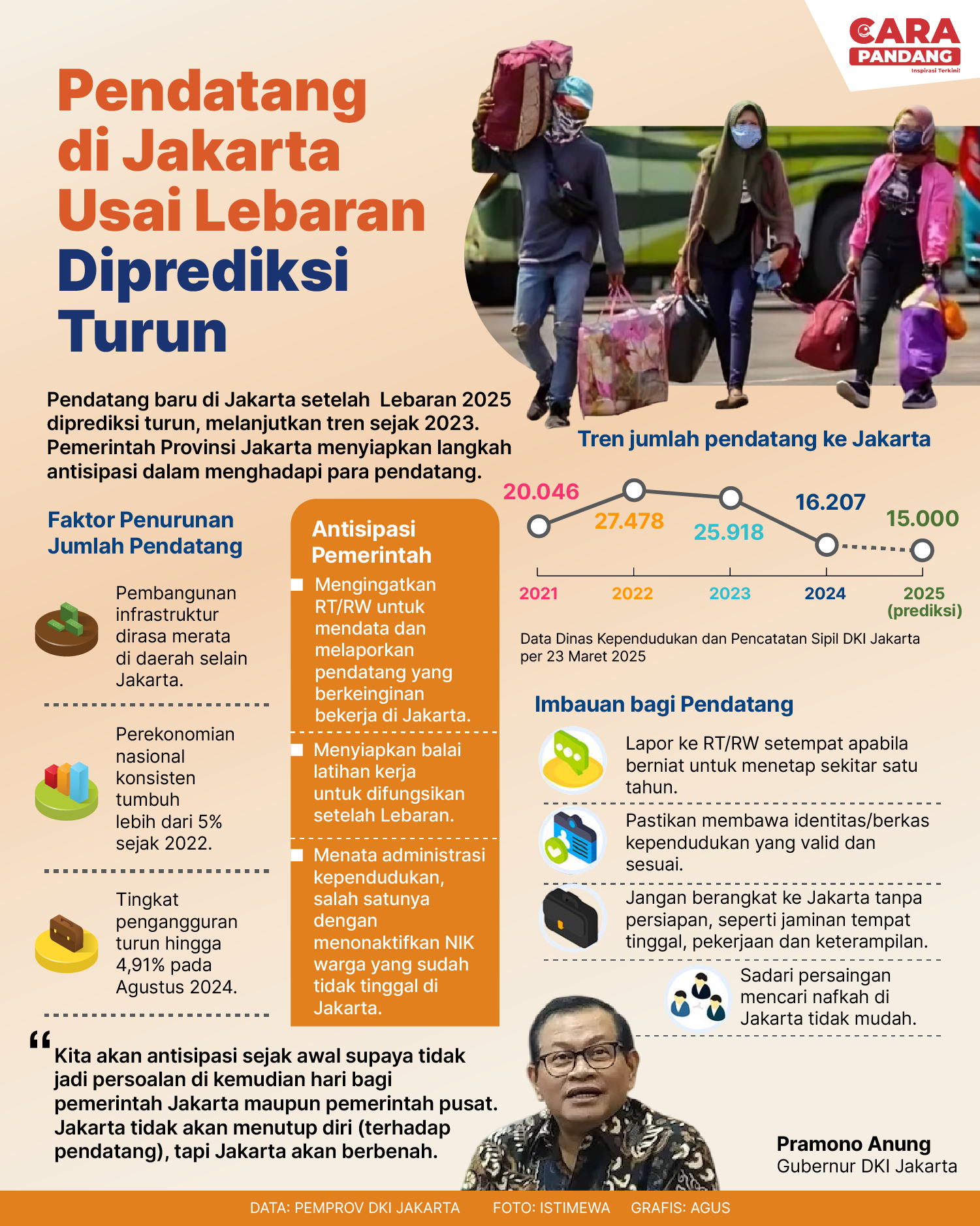 Beranda Infografis Pendatang di Jakarta Usai Lebaran Diprediksi Menurun Infografis Pendatang di Jakarta Usai Lebaran Diprediksi Menurun Penulis Amira Izzati - 02 April 2025 17:03 0 CARAPANDANG - Pendatang di Jakarta Usai Lebaran Diprediksi Menurun Tags Berita Sebelumnya Hari Ketiga Lebaran, Jumlah Pengunjung TMII Diprediksi Terus Bertambah Berita Berikutnya Indonesia Dalam Dilema Misi Perdamaian Dunia LEAVE A REPLY Cancel reply Comment: Please enter your comment! Name:* Please enter your name here Email:* You have entered an incorrect email address! Please enter your email address here Website: Save my name, email, and website in this browser for the next time I comment. Berita Teratas Kisah Ajaib Nabi Sulaiman dan Anak yang Berbakti kepada Orang Tua 8 Cara Merawat Kucing Kesayangan Agar Tubuhnya Selalu Sehat Minuman yang Mampu Redakan Batuk yang Menganggu Manfaat Ajaib Bawang Putih Bagi Kesehatan 8 Cara Menjaga Kesehatan Gigi dan Mulut yang Efektif Berita Terkait Berita Terkait Wajah Baru PP Tunas: Garda Terdepan Perlindungan Anak Indonesia Zoel Rachman - 31 Maret 2026 09:42 MBG 5 Hari Sepekan Masih Wacana Maliq - 30 Maret 2026 11:49 Presiden Ingin Semua Kendaraan Dikonversi ke Listrik Maliq - 30 Maret 2026 11:48 Kewaijiban PSE Terhadap Pengguna Anak Maliq - 30 Maret 2026 11:15