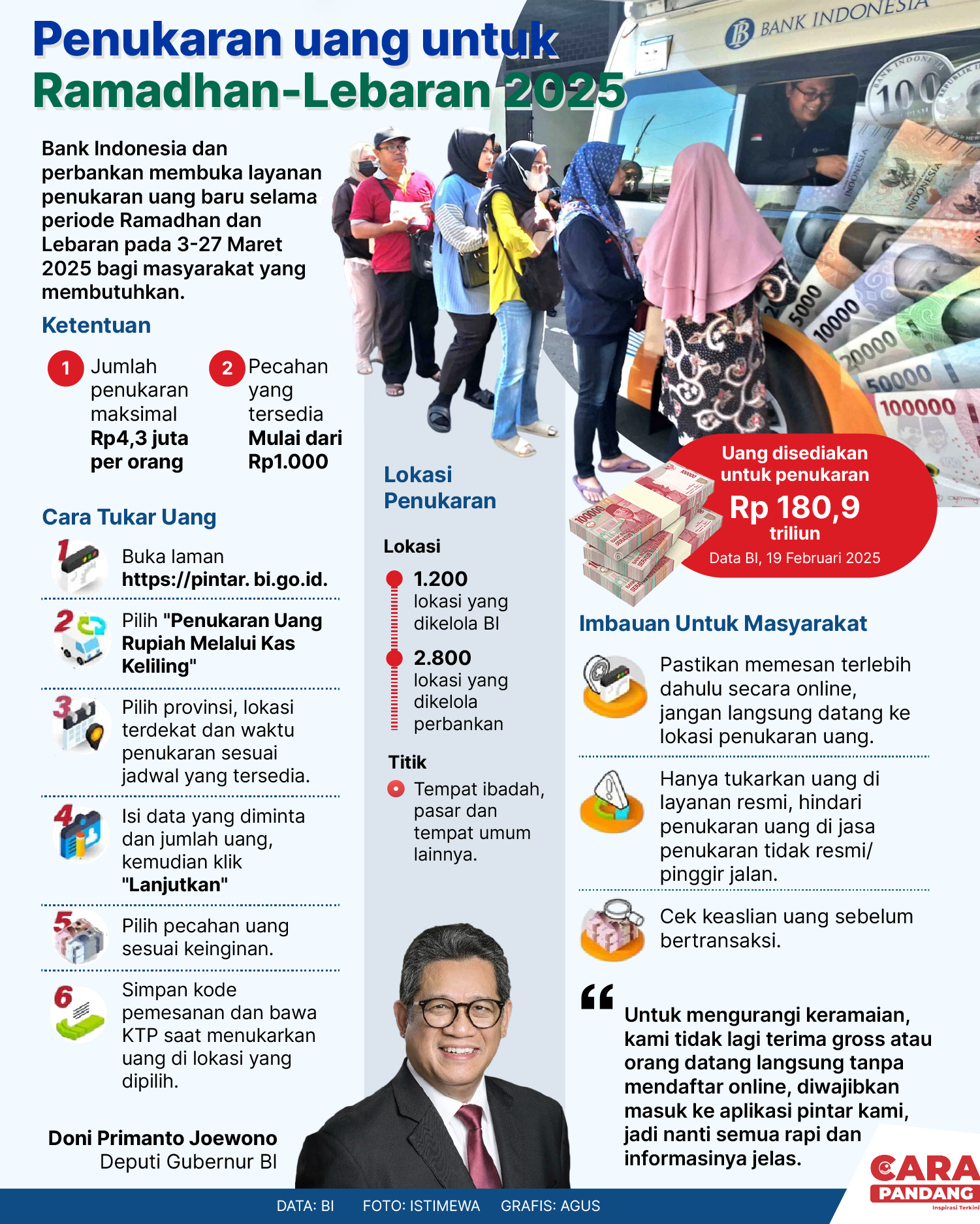 Beranda Infografis Penukaran Uang untuk Ramadan - Lebaran 2025 Infografis Penukaran Uang untuk Ramadan - Lebaran 2025 Penulis Amira Izzati - 04 Maret 2025 20:48 0 CARAPANDANG - Penukaran Uang untuk Ramadan - Lebaran 2025 Tags Berita Sebelumnya Personel TNI dan Polri Diterjunkan Evakuasi Korban Banjir Jabodetabek Berita Berikutnya Indonesia Dalam Dilema Misi Perdamaian Dunia LEAVE A REPLY Cancel reply Comment: Please enter your comment! Name:* Please enter your name here Email:* You have entered an incorrect email address! Please enter your email address here Website: Save my name, email, and website in this browser for the next time I comment. Berita Teratas Kisah Ajaib Nabi Sulaiman dan Anak yang Berbakti kepada Orang Tua 8 Cara Merawat Kucing Kesayangan Agar Tubuhnya Selalu Sehat Minuman yang Mampu Redakan Batuk yang Menganggu Manfaat Ajaib Bawang Putih Bagi Kesehatan 8 Cara Menjaga Kesehatan Gigi dan Mulut yang Efektif Berita Terkait Berita Terkait Wajah Baru PP Tunas: Garda Terdepan Perlindungan Anak Indonesia Zoel Rachman - 31 Maret 2026 09:42 MBG 5 Hari Sepekan Masih Wacana Maliq - 30 Maret 2026 11:49 Presiden Ingin Semua Kendaraan Dikonversi ke Listrik Maliq - 30 Maret 2026 11:48 Kewaijiban PSE Terhadap Pengguna Anak Maliq - 30 Maret 2026 11:15