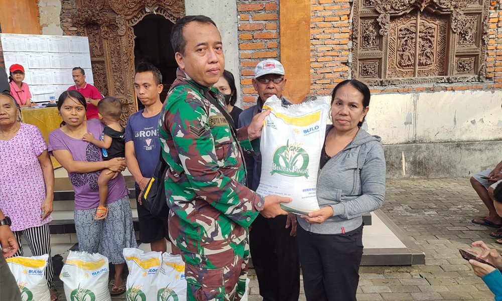 Penyaluran beras tersebut, dilakukan langsung oleh Sertu Agus Pande, Babinsa Koramil Dawan, Kodim 1610/Klungkung.