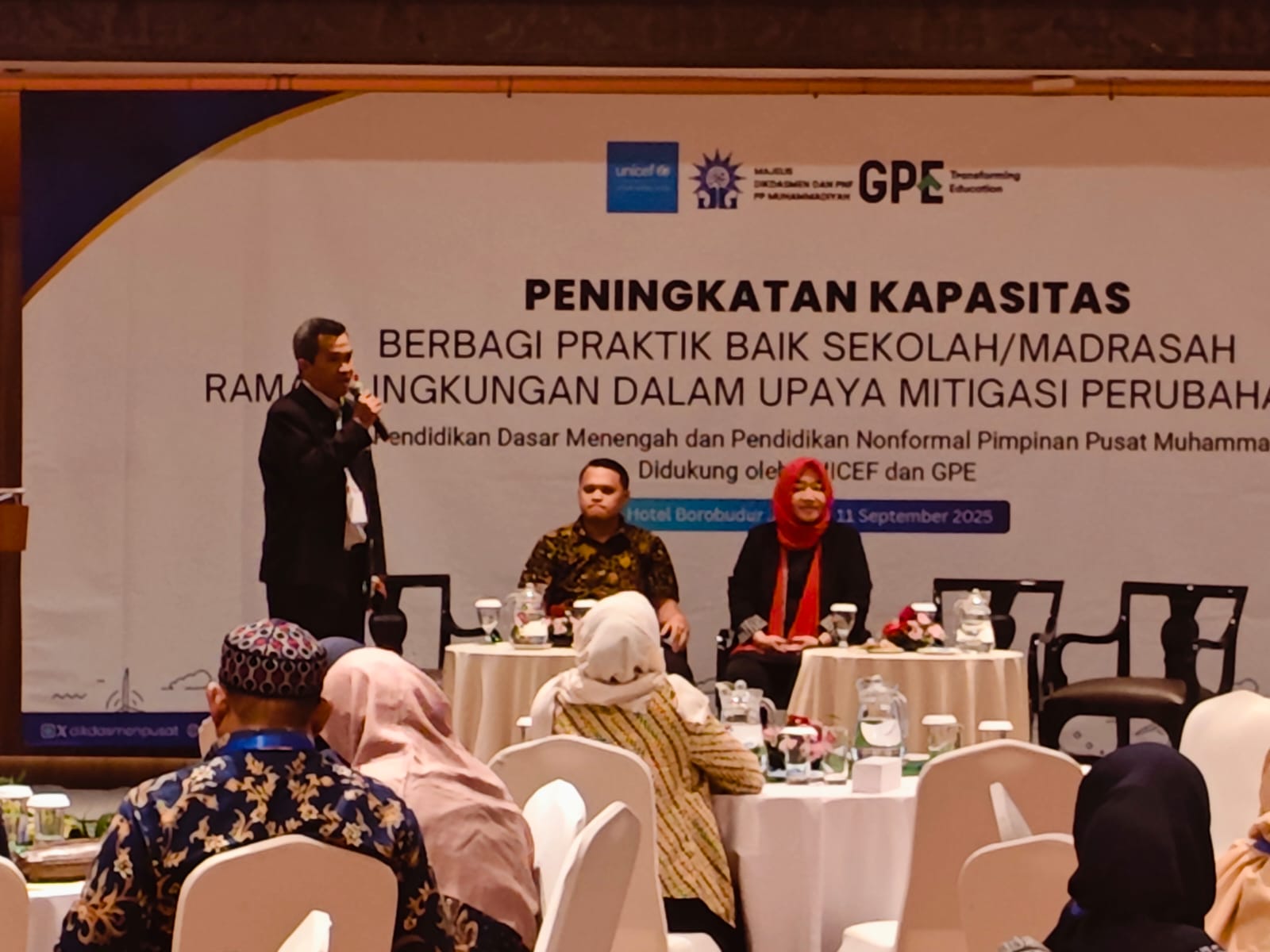 CARAPANDANG - Majelis Pendidikan Dasar Menengah dan Pendidikan Nonformal (Dikdasmen PNF) Pimpinan Pusat Muhammadiyah menyelenggarakan kegiatan Peningkatan Kapasitas Berbagi Praktik Baik Sekolah Ramah Lingkungan dalam Upaya Mitigasi Perubahan Iklim di Hotel Borobudur, Jakarta pada Kamis 11 September 2025.