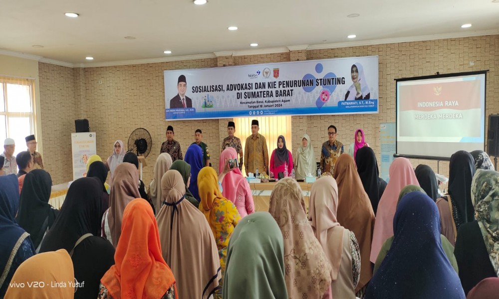 AGAM, CARAPANDANG.COM - Pemerintah Indonesia telah menetapkan stunting sebagai isu prioritas nasional. Komitmen ini terwujud dalam masuknya stunting ke dalam Rencana Pembangunan Jangka Menengah Nasional (RPJMN) 2020–2024. BKKBN Sumatera Barat bersama mitra kerja mengadakan Sosialisasi Advokasi dan KIE Penurunan Stunting di Kecamatan Baso yang dilaksanakan di aula kecamatan Baso Kamis (18/24).