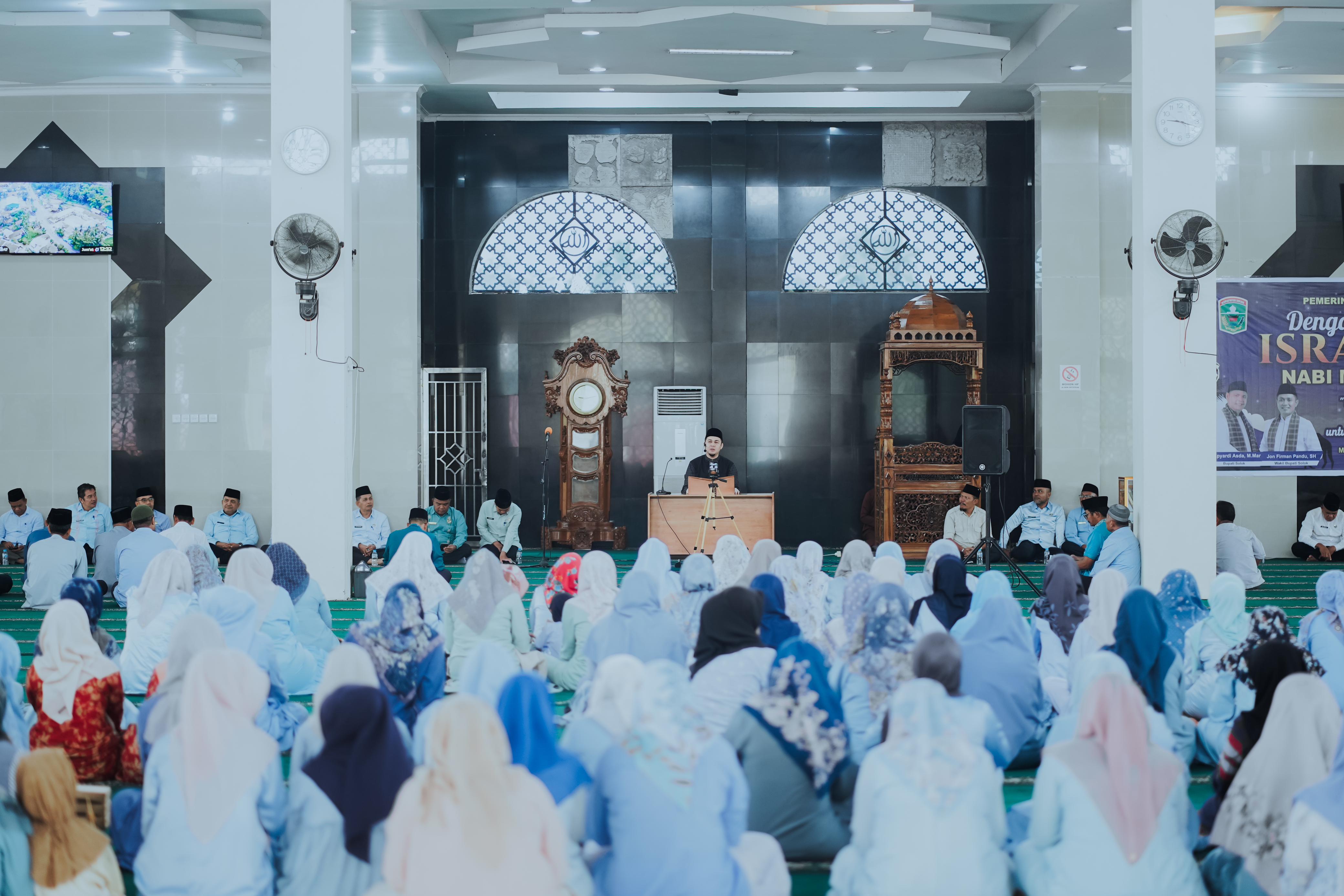 SOLOK, CARAPANDANG - Pemerintah Daerah Kabupaten Solok menggelar acara peringatan Isra’ Mi’raj Nabi Muhammad SAW 1446 H/2025 M di Islamic Centre Koto Baru, acara ini dihadiri Plh. Sekda Kabupaten Solok Editiawarman, Kepala Kementerian Agama Kabupaten Solok Zulkifli, Para Asisten, Staf Ahli, Kepala OPD, ASN, dan THL di Lingkup Pemerintah Daerah Kabupaten Solok.