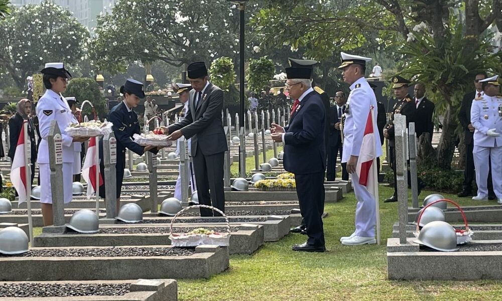 Setelah itu, Presiden Jokowi bersama Wakil Presiden Ma'ruf Amin dengan didampingi oleh para kepala lembaga negara dan menteri kabinet melaksanakan prosesi tabur bunga di pusara sejumlah pahlawan.
