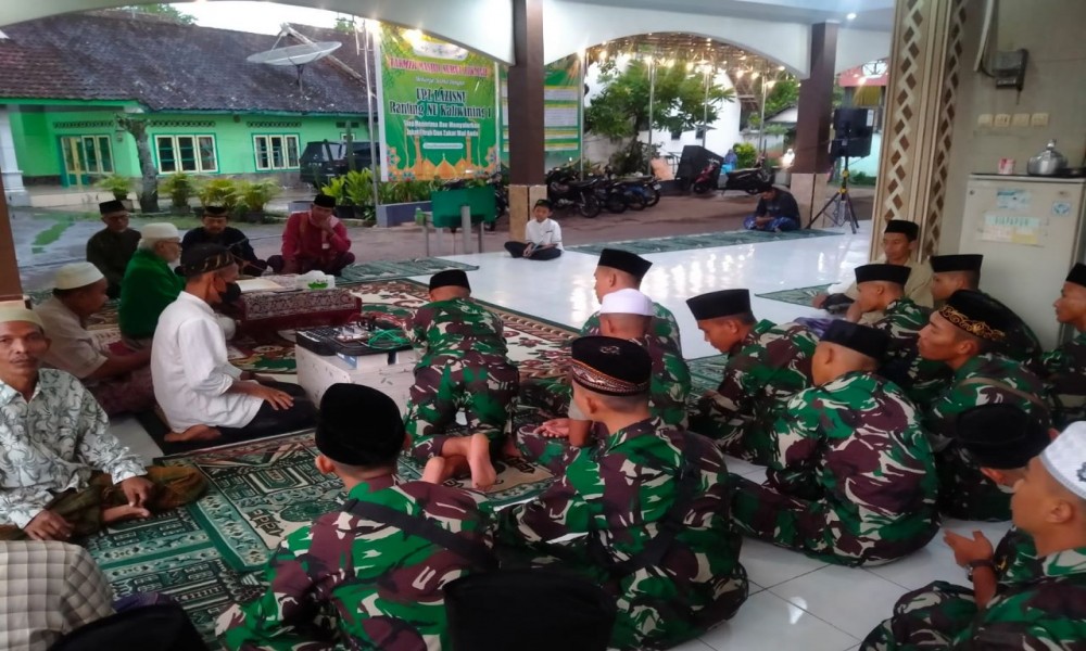 CARAPANDANG - Puluhan personel TNI Angkatan Darat berkopiah hitam dan berpeci putih ini saban sore bergegas menuju Masjid Nurul Hikmah di lingkungan Pesantren An-Nuriyah, Kaliwining, Jember. Kadangkala mereka memakai pakaian dinas harian, kerap pula memakai pakaian loreng. Selama Ramadhan mereka menjadi santri di pesantren yang diasuh oleh Gus Yayak.
