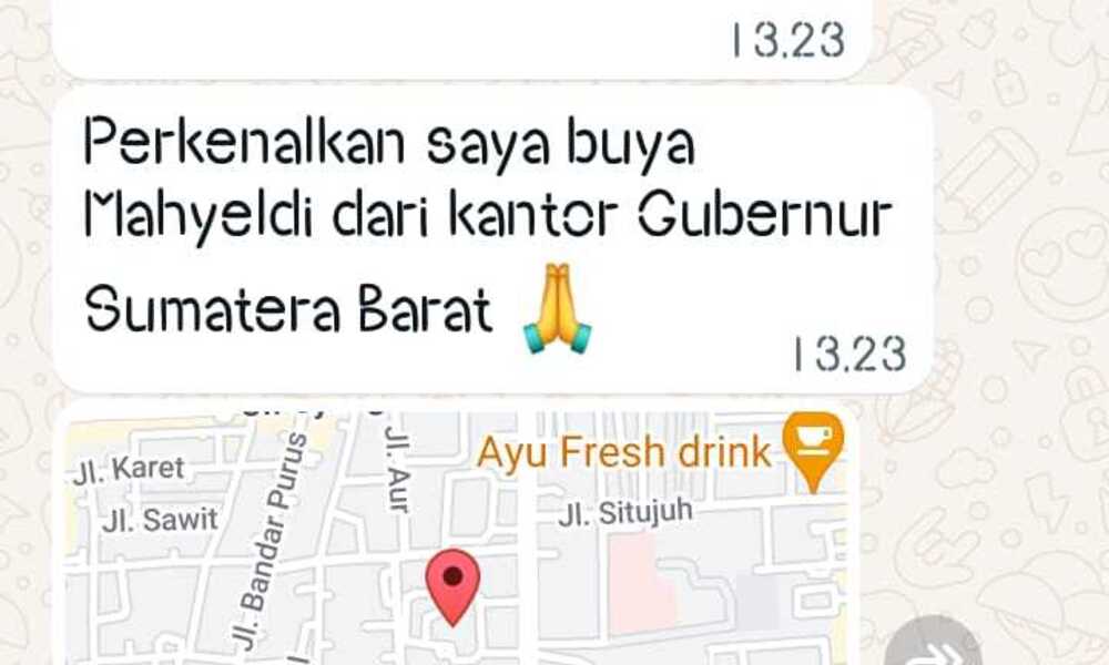 SUMBAR, CARAPANDANG - Seluruh masyarakat Sumatera Barat (Sumbar) diimbau untuk mengabaikan pesan whatsapp berkedok penipuan yang mengatasnamakan diri sebagai Gubernur Sumbar, Mahyeldi Ansharullah. Sebab akhir-akhir ini, semakin banyak pesan penipuan berkedok penyaluran dana hibah dari Pemprov Sumbar, yang menyasar para pengurus masjid, mushala, kelompok tani (keltan), yayasan, dan organisasi masyarakat (ormas).